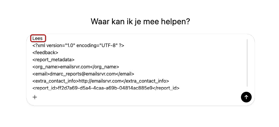 Je kunt AI-tools, zoals ChatGPT, gebruiken om een DMARC-rapport te analyseren en te interpreteren. Deze sectie toont stapsgewijze instructies.