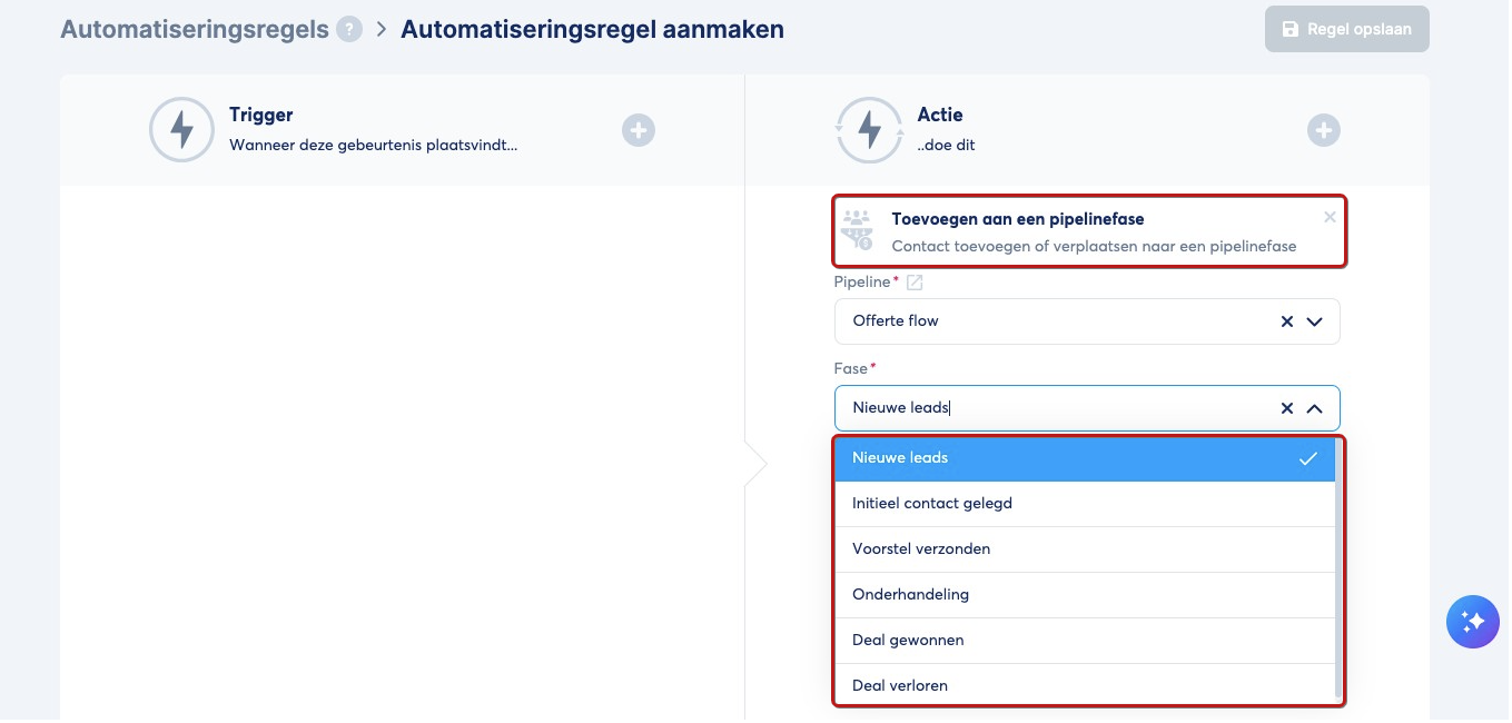Dit vereenvoudigt het beheren van verkoopkansen, omdat je repetitieve handmatige acties voorkomt en ervoor zorgt dat prospects op de juiste manier door de pipeline bewegen.