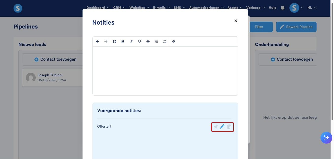 Daarnaast kun je bestaande notities bewerken, vastzetten of verwijderen via de iconen die naast de eerdere notities staan.