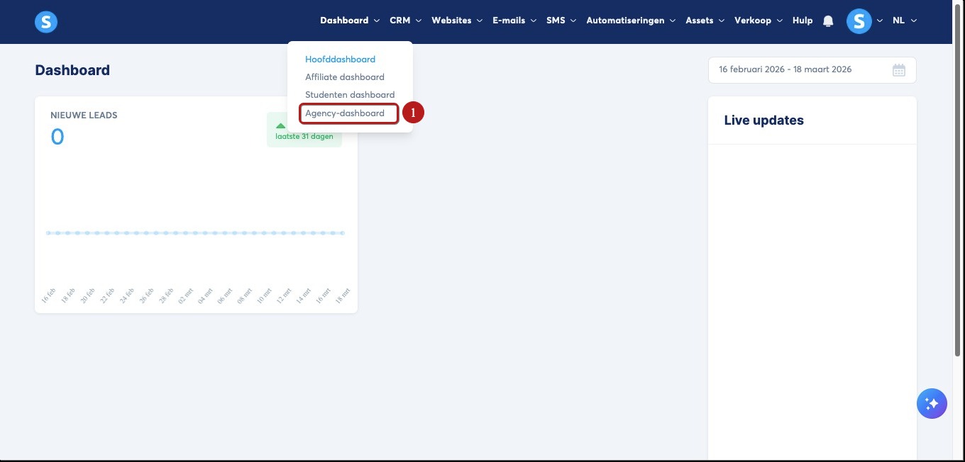 Ga naar Agency-dashboard (1) onder het Dashboard-tabblad.