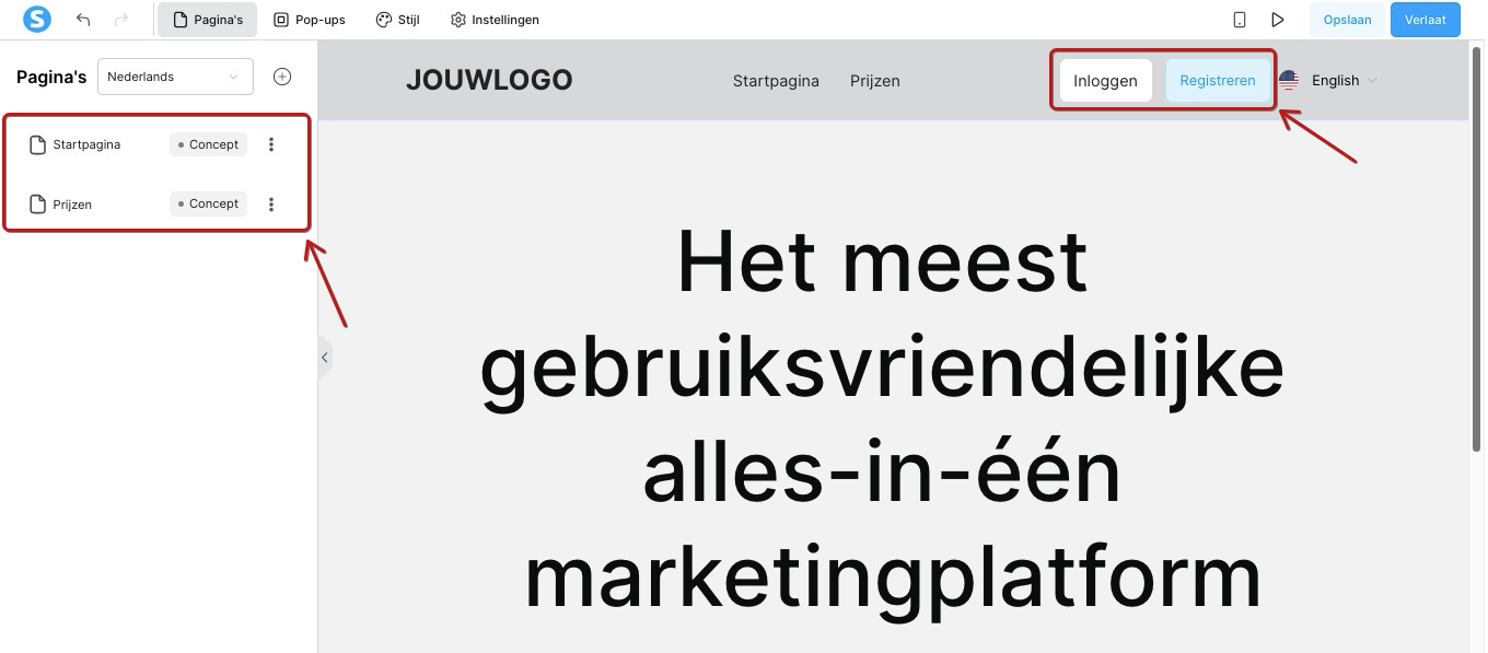 - Startpagina: De hoofdlandingspagina van je white‑labeldomein