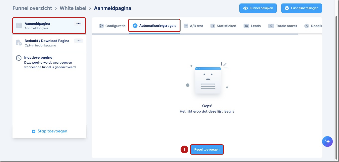 Op de opt-in-pagina ga je naar het tabblad Automatiseringsregels en klik je op Regel toevoegen (1).