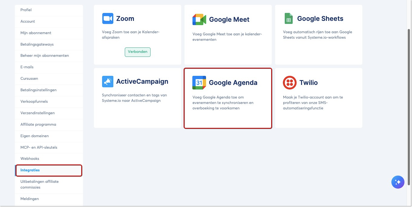 In dit artikel leer je hoe je je Google Agenda-account kunt integreren met systeme.io.