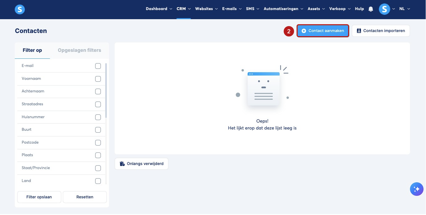 Ga naar Contacten (1) onder het tabblad CRM.