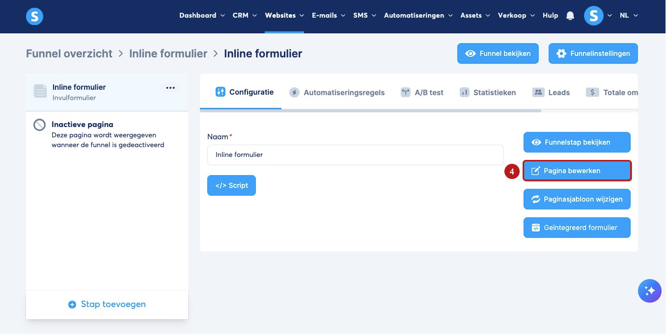 Ga naar de pagina‑editor van het formulier door op Pagina bewerken (4) te klikken om je formulier aan te passen.