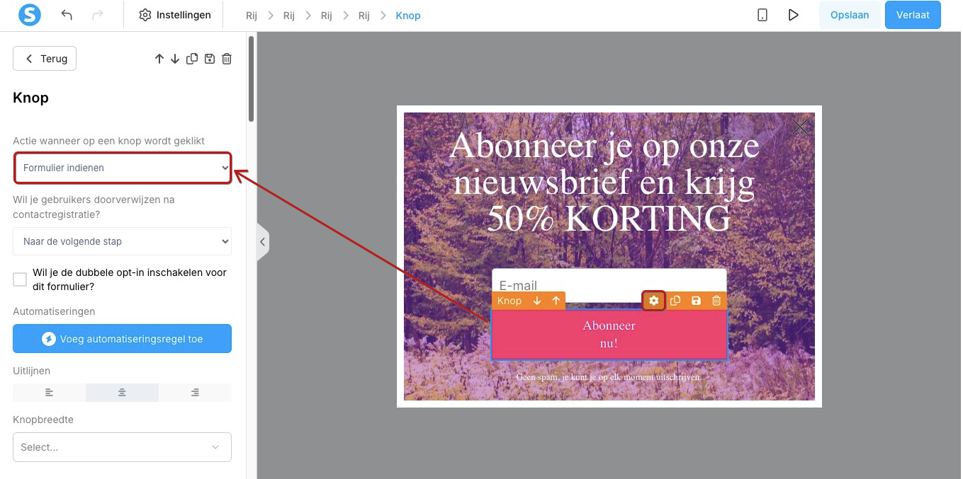 Vergeet niet op Opslaan te klikken voordat je de editor of je popupformulier verlaat.