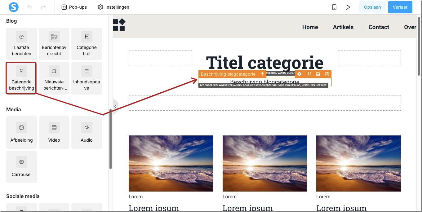 Klik hier om meer te leren over het gebruik van het element Latest blog posts carousel.
