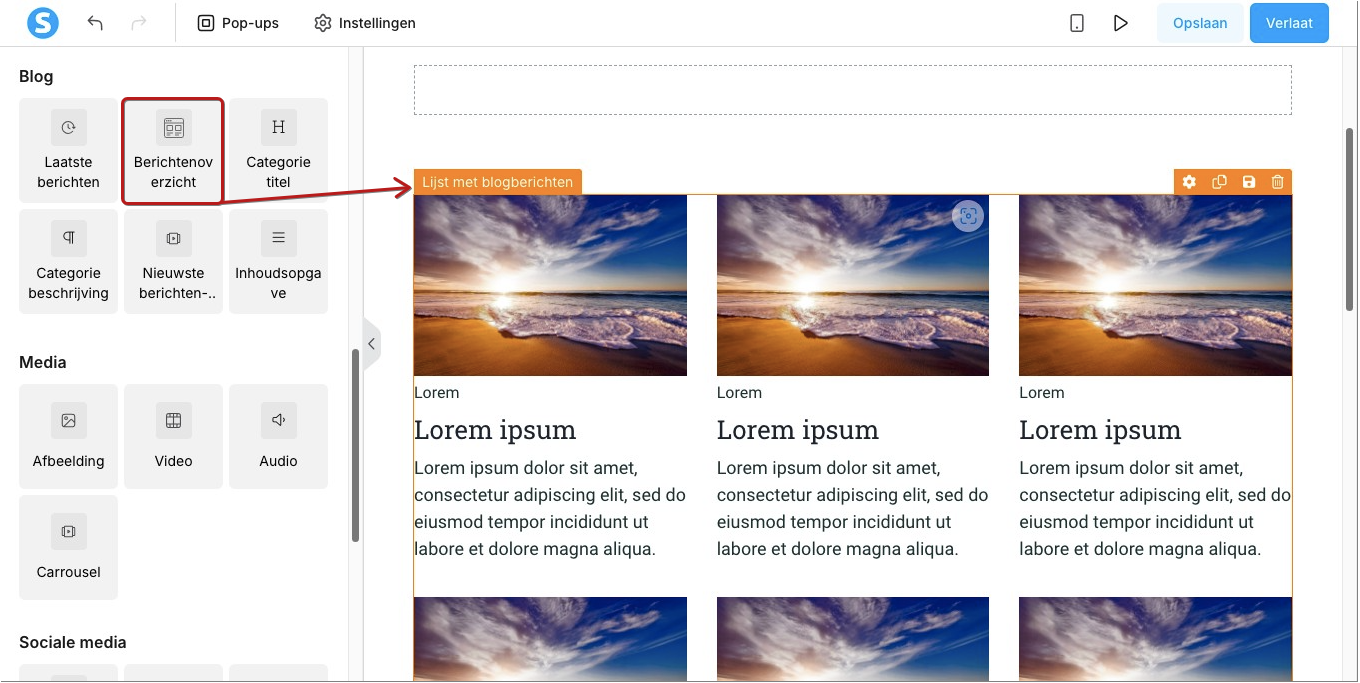 Instellingen blogberichtenlijst: