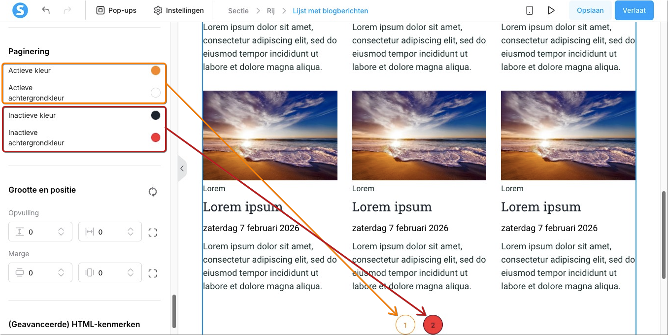 Om bezoekers duidelijk te maken op welke pagina ze zich bevinden, kun je de kleuren van actieve en inactieve paginanummers aanpassen.