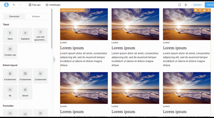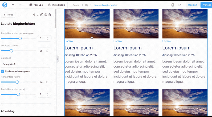 Via het instellingenpaneel aan de linkerkant, of door op het blogpost‑lijst‑element te klikken, kun je de volgende opties aanpassen: