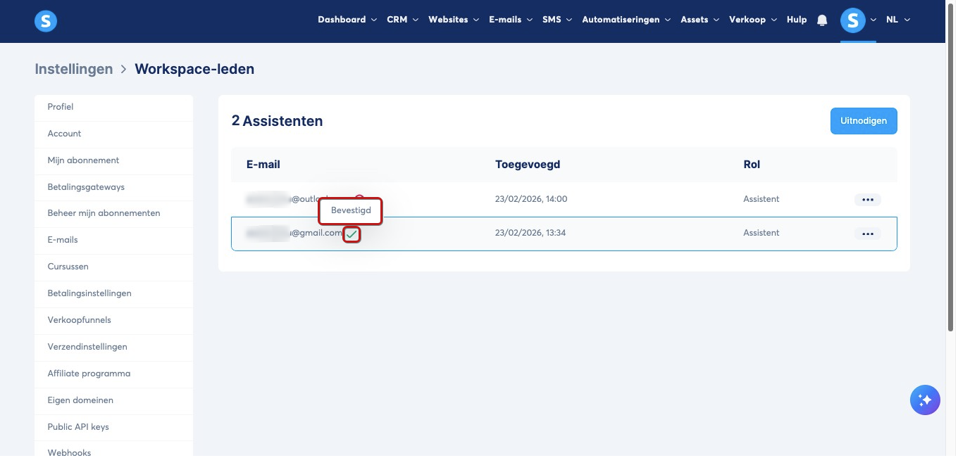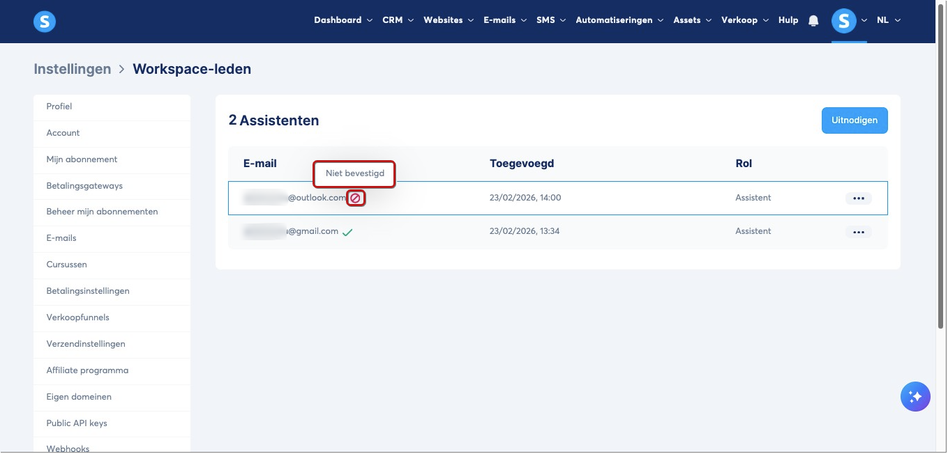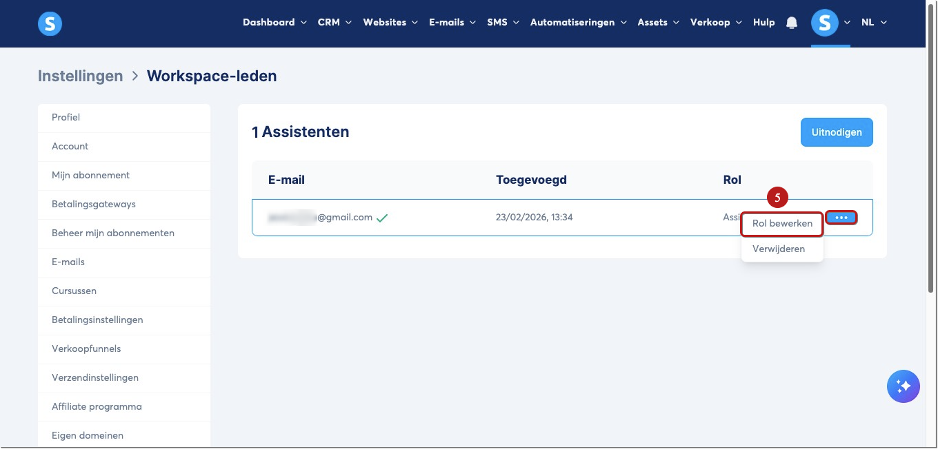 Hoe nodig je een assistent uit voor je systeme.io account