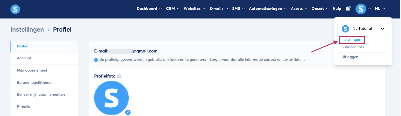 - Klik op je profielfoto, en ga dan naar de sectie “Instellingen”.