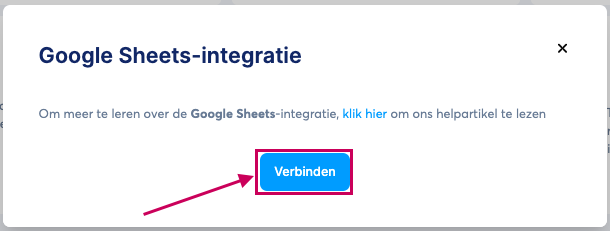 4. Er verschijnt een eerste pop-upvenster waarin je op ‘Verbinden’ moet klikken om de integratie met Google Sheets te starten.