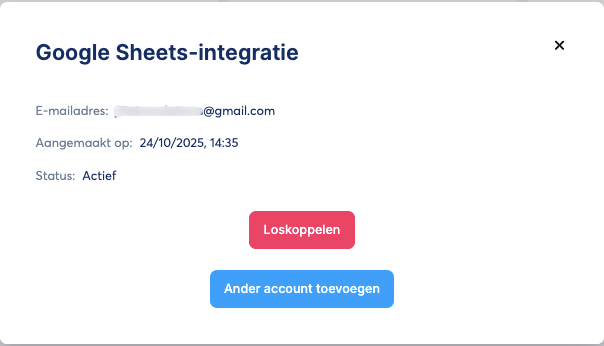 Na het klikken op ‘Verbonden’ krijg je de klantaccountgegevens te zien, de optie om dit Google-account te ontkoppelen en de mogelijkheid om andere accounts toe te voegen.