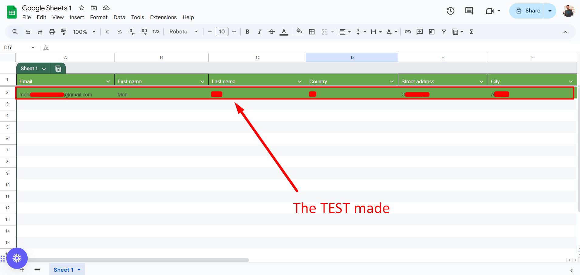 Zodra je deze stappen hebt doorlopen, worden al je gegevens automatisch opgeslagen in je Google Sheet en is er geen ander intermediair platform meer nodig.