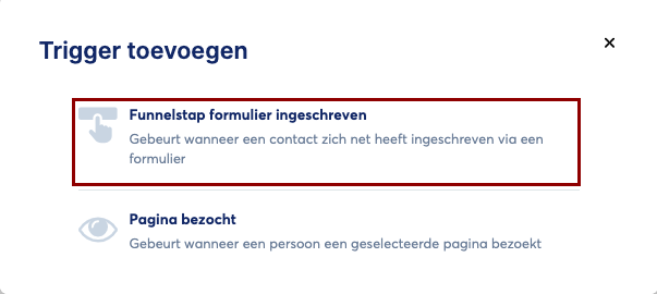 - Kies de trigger "Funnelstap formulier ingeschreven".