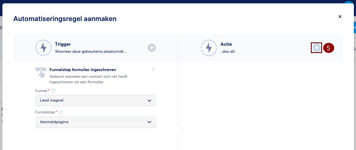 - Om een actie toe te voegen, klik je op de "+"-knop. (5)