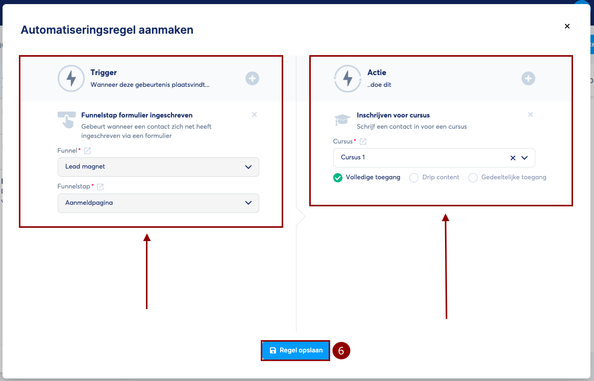 In dit artikel leer je hoe je het proces automatiseert om een contactpersoon toegang te geven tot een cursus wanneer zij zich registreren via jouw opt-in formulier.