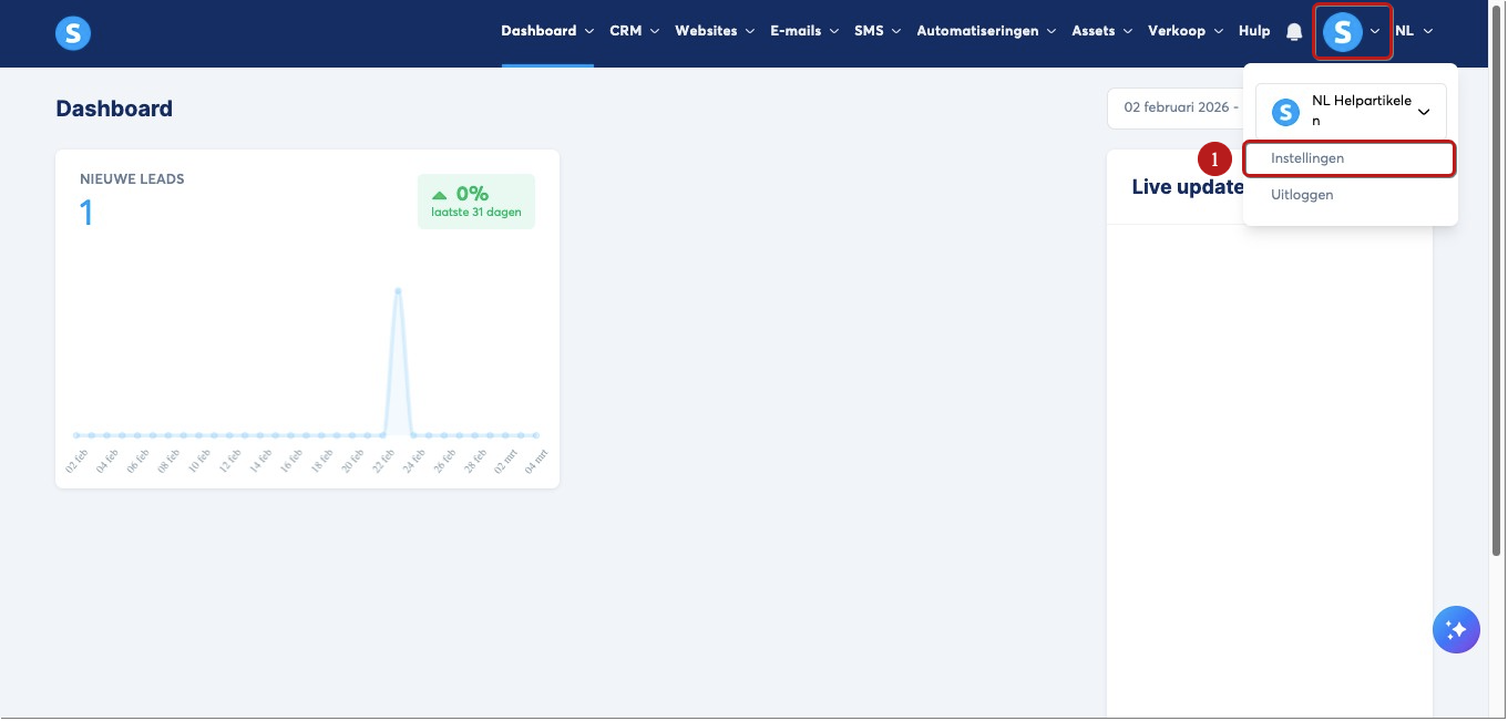 Klik in je systeme.io-account op je profielfoto en ga naar Instellingen (1).