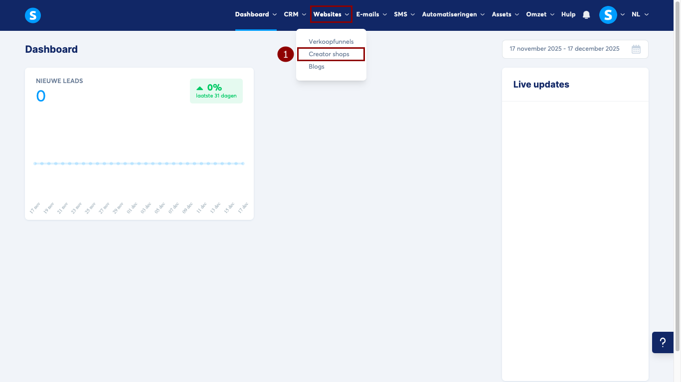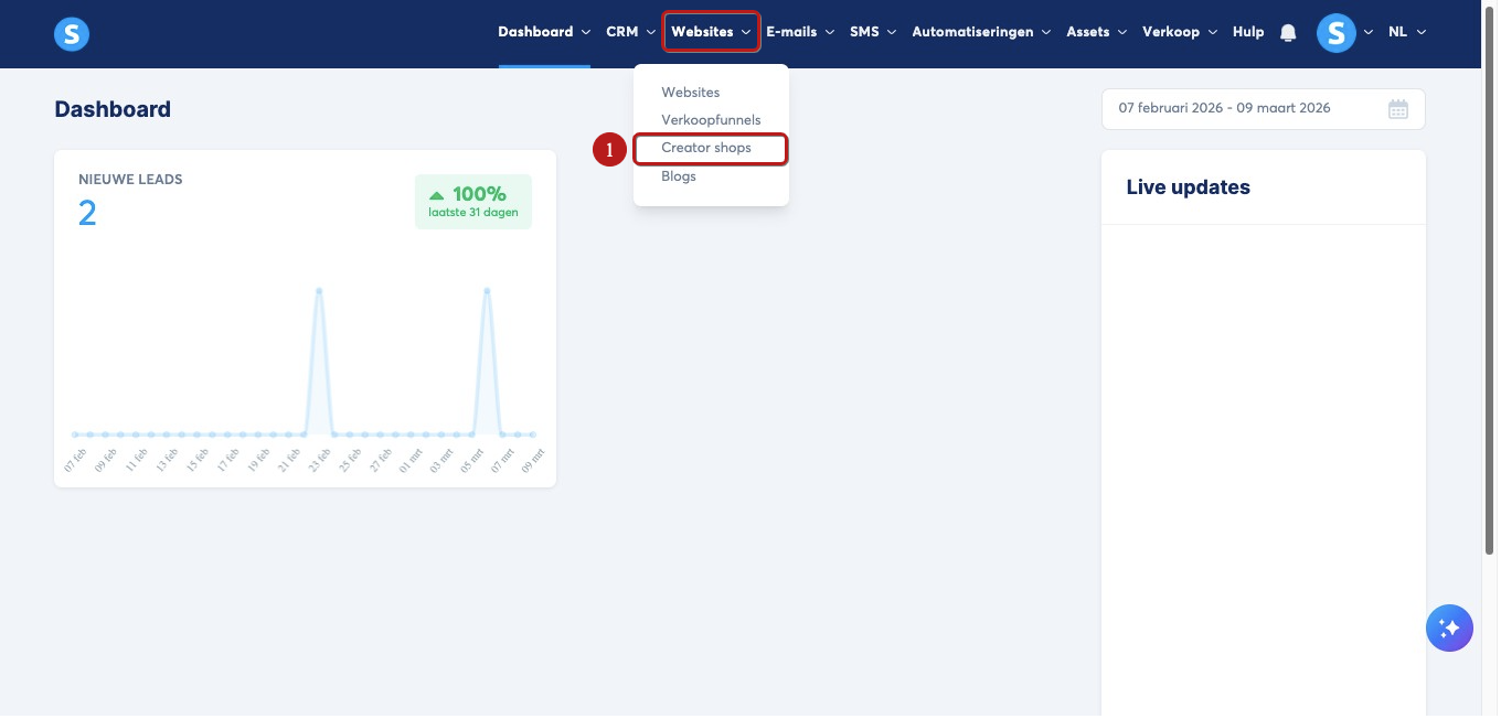 Ga naar het tabblad Websites en klik vervolgens op Creator shops (1).