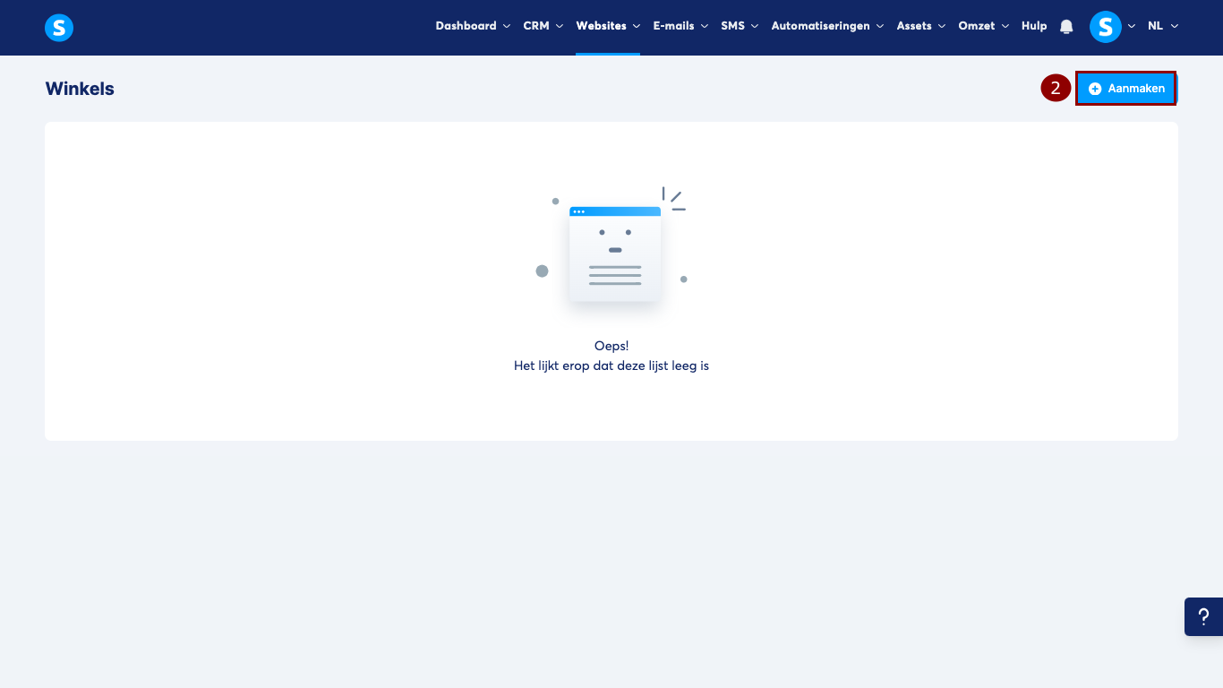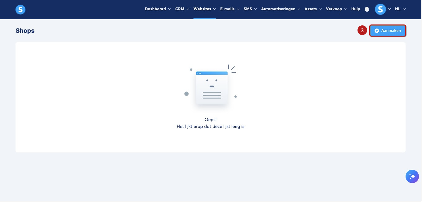 Klik op Aanmaken (2) om je creator shop aan te maken.