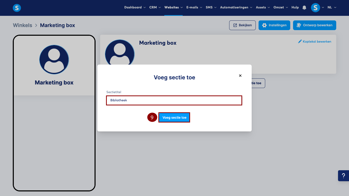 Er verschijnt een pop-up waarin je een titel voor je sectie moet invoeren. Klik vervolgens op Voeg sectie toe (9) om op te slaan.