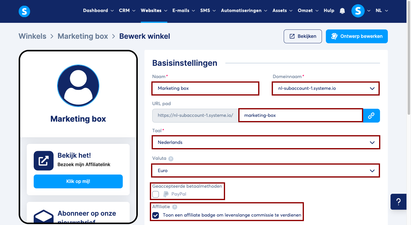 - Naam en domeinnaam van je winkel