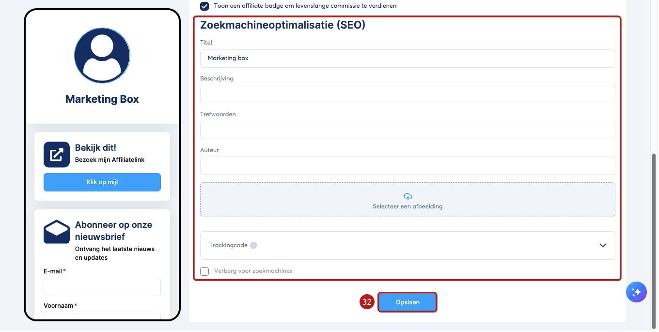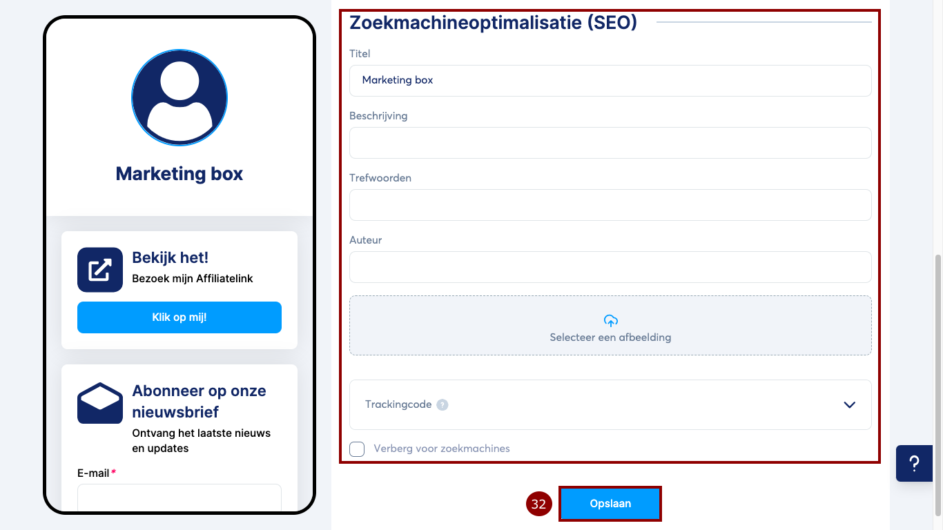 Om de wijzigingen op te slaan, klik je tot slot op Opslaan (32).