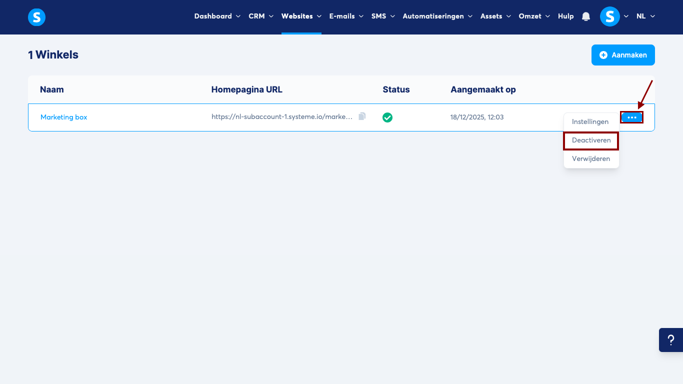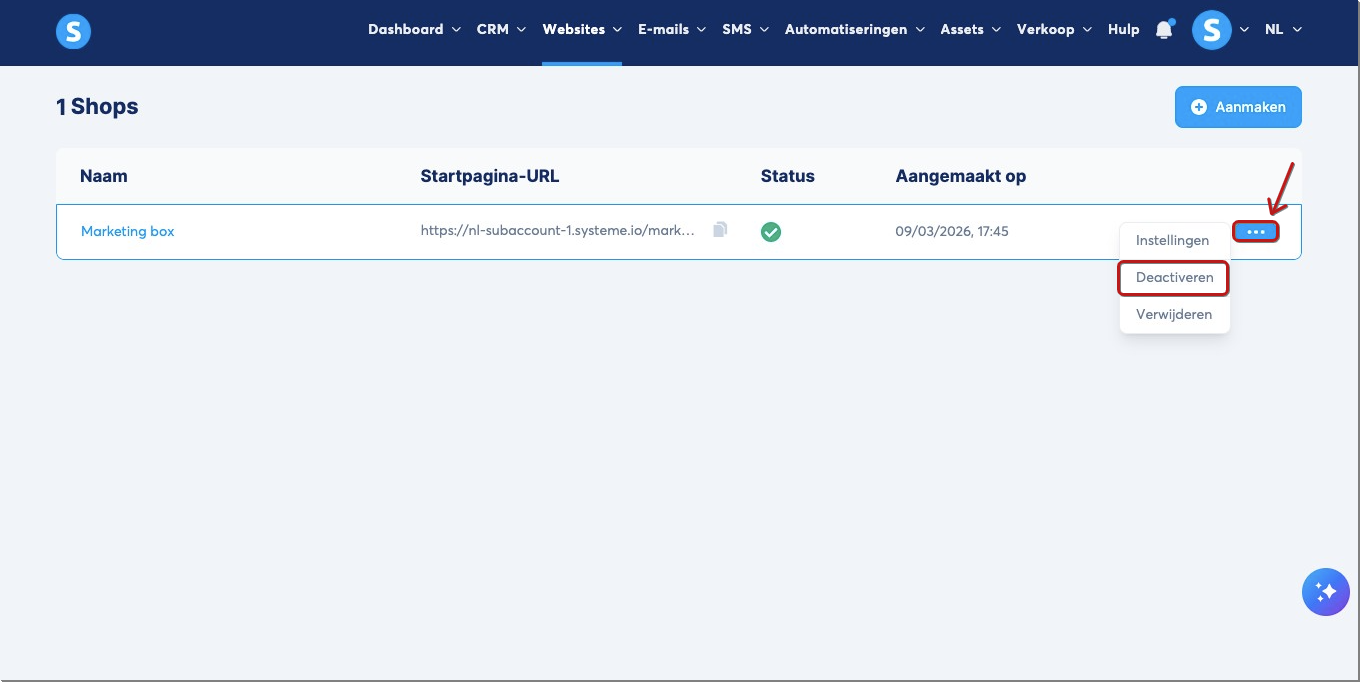 - Het is mogelijk om een Creator Shop te deactiveren. Klik op de betreffende digitale winkel, klik vervolgens op het 3-puntjesmenu en selecteer Deactiveren.