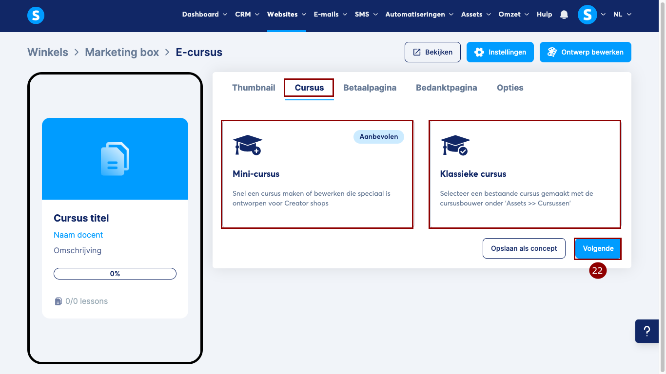 2. Cursus: Vervolgens kun je kiezen tussen een mini-cursus of een klassieke cursus, afhankelijk van je behoeften.