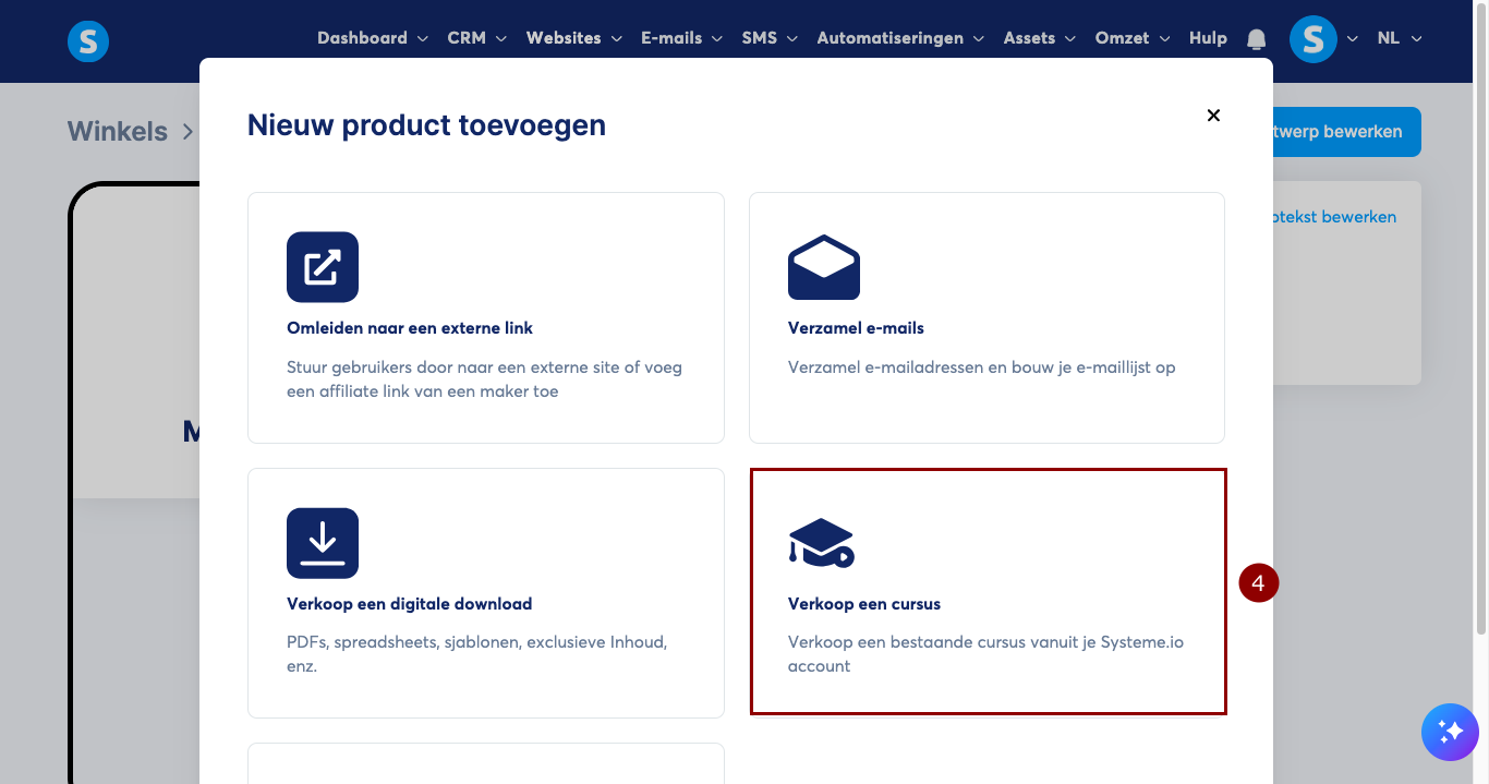 Selecteer Verkoop een cursus (4).